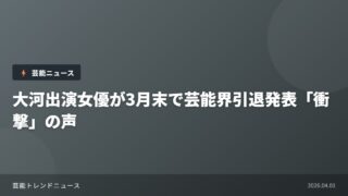 NHK大河ドラマへの出演歴を持つ女優が、3月末をもって芸能界から引退することを発表し、エンタメ業界に大きな衝撃を与えてい...