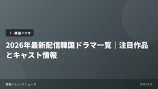 ドラマ・映画 2026年最新配信韓国ドラマ一覧|注目作品とキャスト情報 2026年は韓国ドラマファンにとって豊作の年となりそうです。Netflix、Prime Video、Disney+などの... 2026.03.25 ドラマ・映画