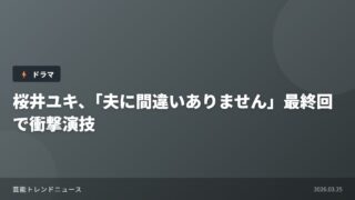 ドラマ・映画 桜井ユキ、「夫に間違いありません」最終回で衝撃演技 松下奈緒主演のフジテレビ系ドラマ「夫に間違いありません」の最終回が3月23日に放送され、桜井ユキが演じる葛原紗春の衝撃的... 2026.03.25 ドラマ・映画