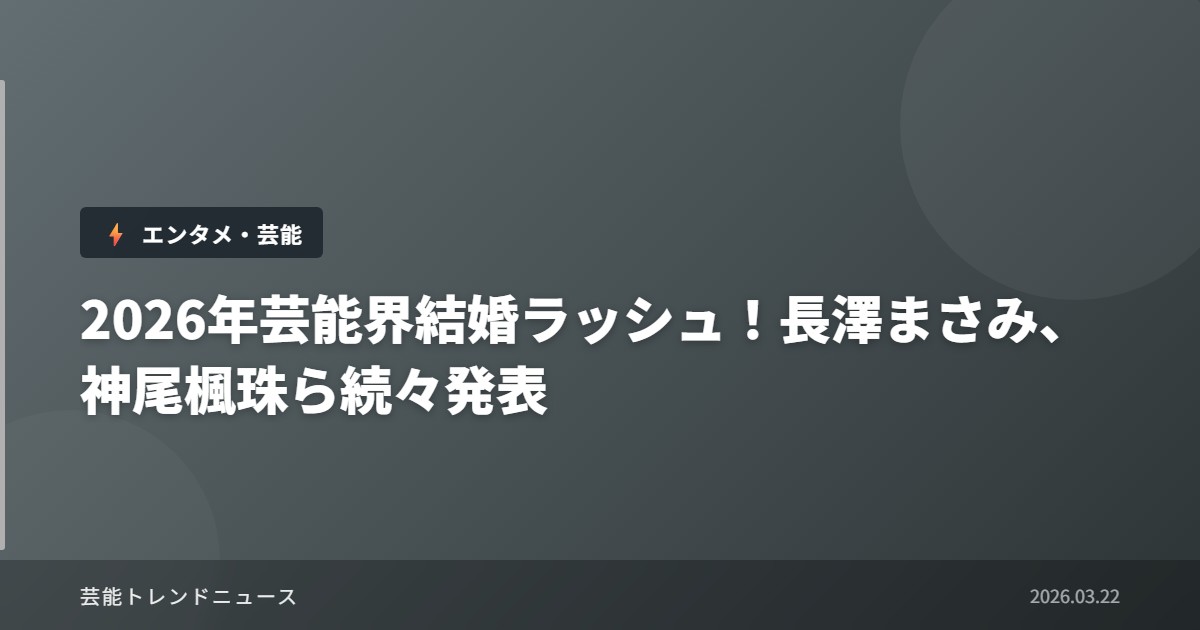 2026年に入り、芸能界では結婚発表が相次いでおり、ファンの間で大きな話題となっています。
