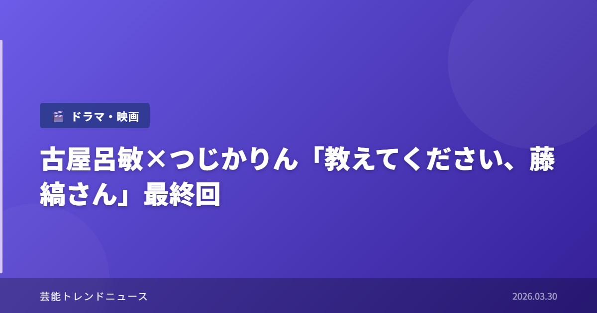 「教えてください、藤縞さん」は、人気TL小説を実写化したDMM TVオリジナルドラマとして2026年2月から配信を開始した。これまで8話にわたって、主人公カップルの甘いやり取りと情熱的なラブシーンが描かれ、TLドラマファンから高い支持を得てきた。特に古屋呂敏演じる藤縞と、つじかりん演じるヒロインの恋愛模様は、原作ファンからも「イメージ通り」との評価を受けていた。