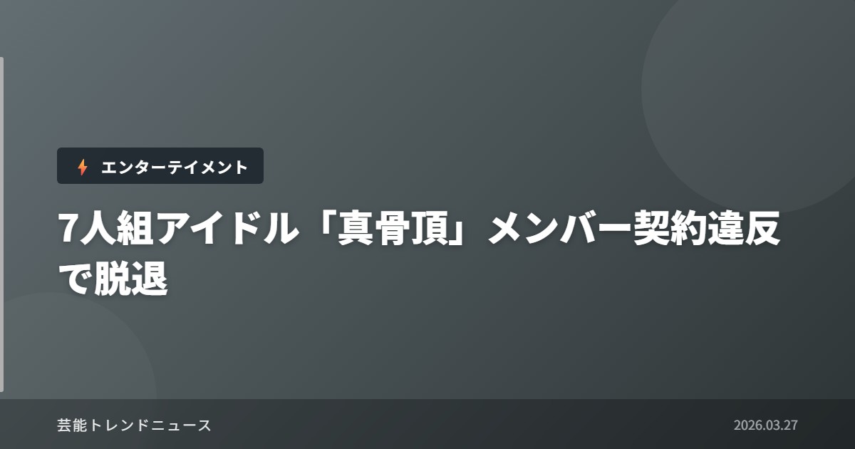 アイドルグループ「にっぽん!真骨頂」が公式X(旧Twitter)にて、メンバーの鈴木かのんが重大な契約違反を理由に契約を解除されたことを発表した。同グループは地下アイドル界で注目を集めていただけに、今回の発表は多くのファンに衝撃を与えている。