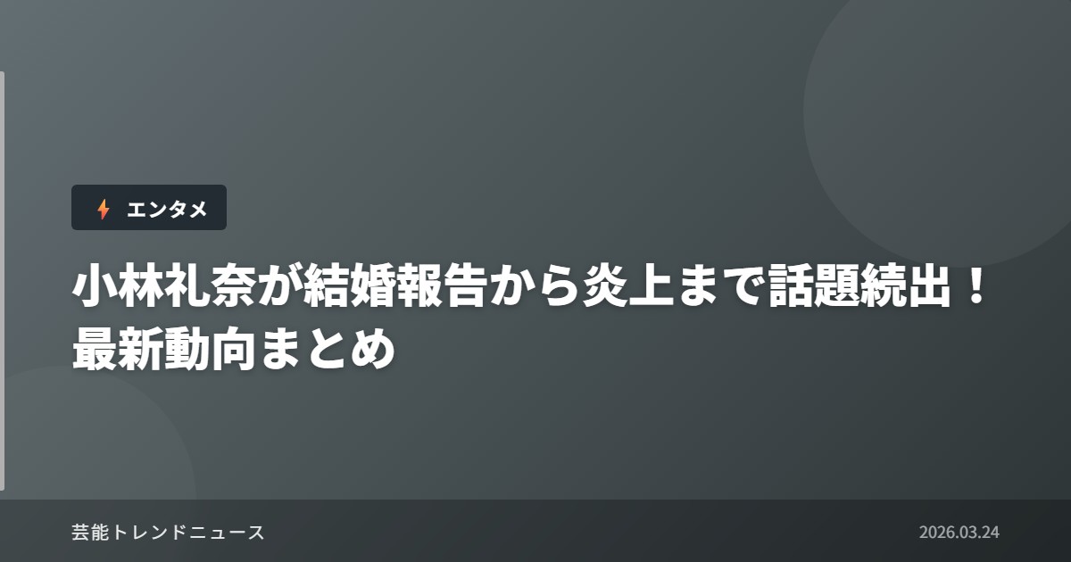 元ものまねタレントでブロガーの小林礼奈さん(33)が2024年6月30日、自身のブログで結婚を報告し大きな話題となりました。「本日6月30日、婚姻届を提出しに行きまして…私たち、結婚して夫婦になりました」と2ショット写真を添えて報告した小林さん。彼女によると、お相手とは今年3月の「彼氏募集イベント」を機に交際が始まったとのことで、スピード婚として注目を集めています。