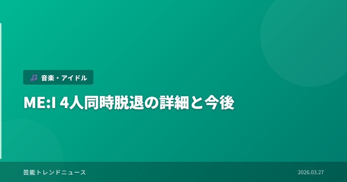 音楽業界全体としても、アイドル活動における持続可能性について改めて議論が必要だという声が上がっています。今後数か月間で、ME:Iの新体制がどのような成果を上げるか、また脱退メンバーの個人活動がどう展開するかが、この判断の正しさを測る指標となりそうです。