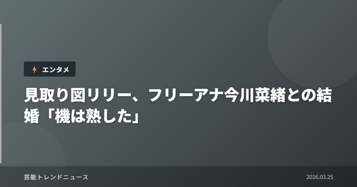 見取り図リリーと今川菜緒アナウンサーの交際が順調に進展し、結婚への具体的な意欲が示された今回の発言は、多くの人々から祝福を受けている。41歳のリリーが「機は熟した」と語った言葉からは、真剣な交際への姿勢がうかがえる。正式な発表を待つファンや関係者にとって、二人の幸せな未来への期待は高まるばかりである。