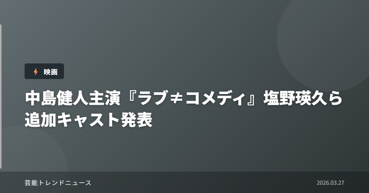 中島健人主演『ラブ≠コメディ』の追加キャスト発表により、作品への期待値が大幅に上昇しています。塩野瑛久をはじめとする実力派俳優陣の参加により、物語に深みと多様性が加わることが予想されます。7月3日の公開に向けて、映画業界全体が注目する作品として、その成功が今後の邦画制作にも影響を与える可能性があります。豪華キャスト陣が織りなすエンターテインメント作品として、多くの観客を映画館に足を運ばせる力を持った作品となることでしょう。