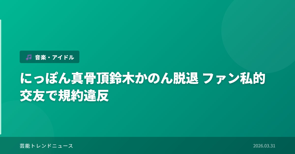 アイドル業界に衝撃が走っている。7人組女性アイドルグループ「にっぽん!真骨頂」のメンバー鈴木かのんが、ファンとの私的交友などの重大な規約違反により3月14日付でグループを脱退したことが発表された。アイドルとファンの関係性において厳格なルールが設けられる業界において、今回の事態は改めてアイドル活動の規約の重要性を浮き彫りにしている。グループは今後6人体制での活動継続を発表しており、ファンからは様々な反応が寄せられている。