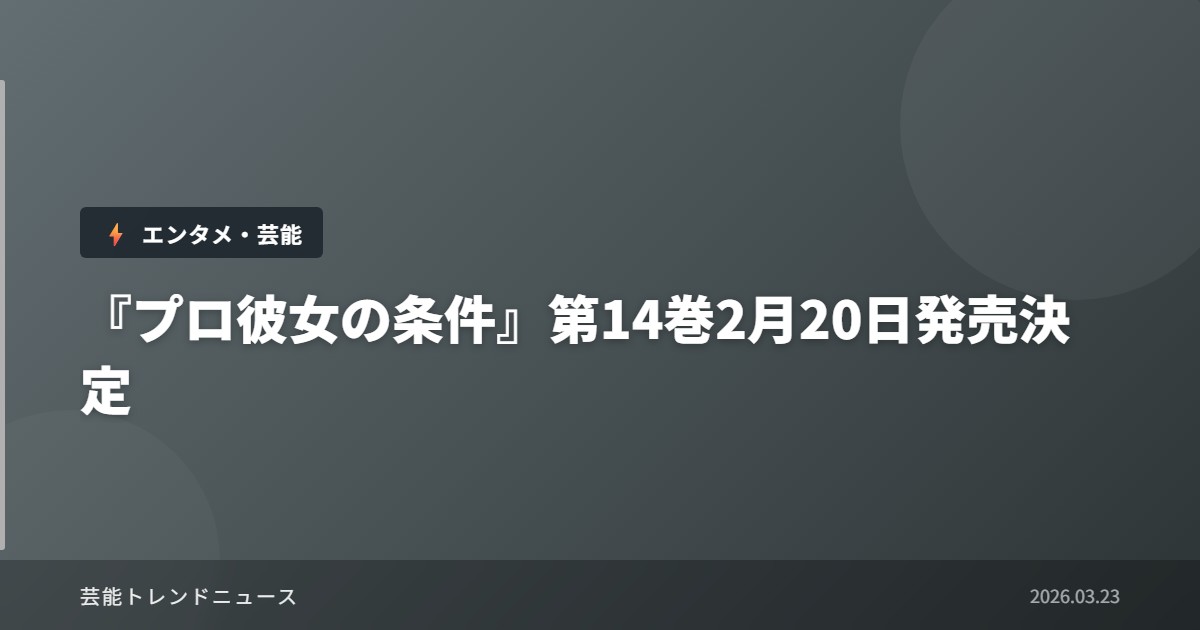 ショートドラマアプリBUMPで年間1位を獲得した話題の原作漫画『プロ彼女の条件 芸能人と結婚したい女たち』の第14巻が、2月20日に発売されることが発表されました。芸能界の華やかな世界の裏側で繰り広げられる女性たちの壮絶な戦いを描いた本作は、多くの読者から注目を集めています。シンデレラストーリーの裏に隠された現実を赤裸々に描写し、社会現象を巻き起こしている注目作品です。