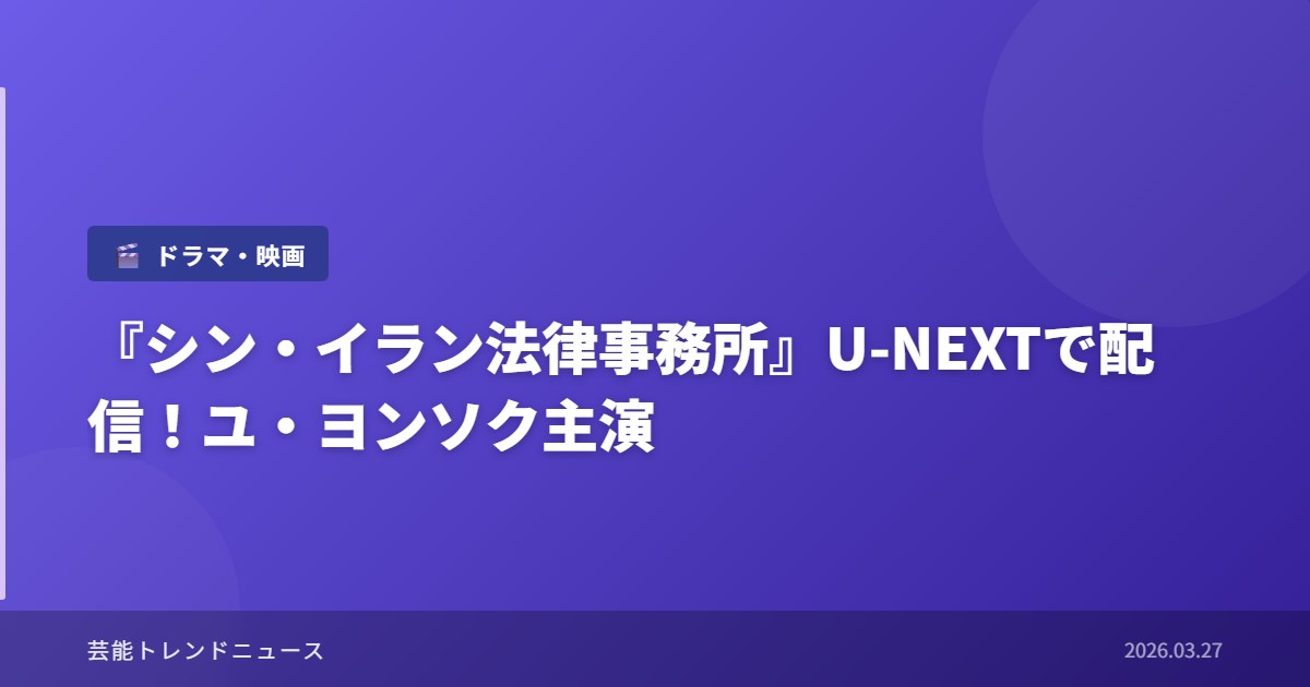 韓国ドラマ『シン・イラン法律事務所』は、U-NEXTで日本独占配信中で、ユ・ヨンソクの新たな魅力を堪能できる話題作となっています。韓国では視聴率が急上昇しており、オカルト法廷ドラマという新ジャンルが多くの視聴者に受け入れられています。ユ・ヨンソクファンはもちろん、韓国ドラマファン全般におすすめの作品といえるでしょう。