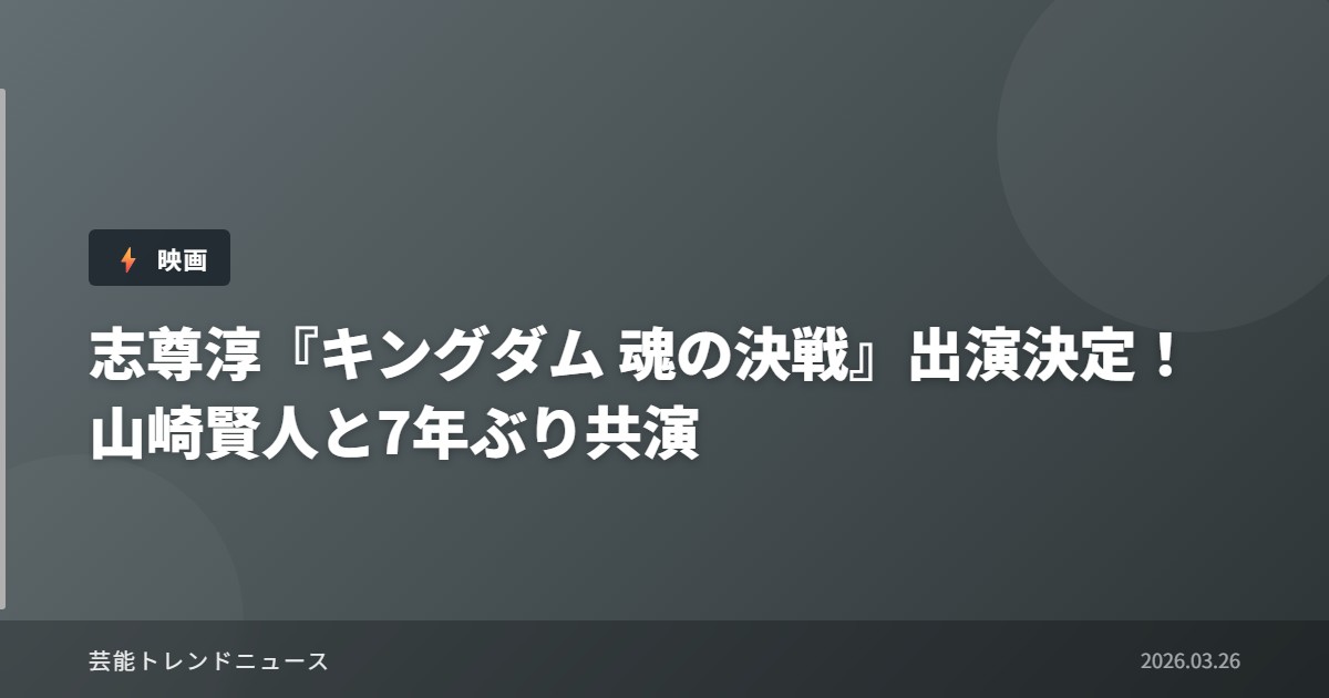 映画『キングダム』シリーズの最新作『キングダム 魂の決戦』に、志尊淳をはじめとする豪華キャスト7名の参戦が発表され、話題となっています。同シリーズは2019年の第1作以来、累計興行収入245億円を超える人気作品として注目を集めています。今回の発表では、志尊淳が主人公信のライバル的存在である蒙恬役で出演し、主演の山崎賢人との約7年ぶりの共演が実現することが明らかになりました。7月17日公開予定の本作は、原作漫画の「合従軍編」を描く重要な節目となる作品として期待されています。