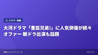 ドラマ・映画 大河ドラマ「豊臣兄弟!」に人気俳優が続々オファー 朝ドラ出演も話題 2025年のNHK大河ドラマ「豊臣兄弟!」をはじめ、朝ドラなどNHKの看板番組に人気俳優からのオファーが殺到していること... 2026.03.27 ドラマ・映画