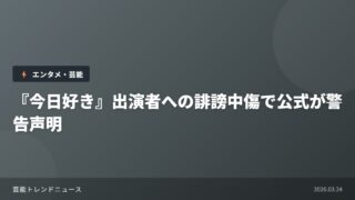 芸能ニュース 『今日好き』出演者への誹謗中傷で公式が警告声明 ABEMAの人気恋愛リアリティーショー『今日、好きになりました。』の出演者に対する誹謗中傷が深刻な問題となっている。番組... 2026.03.24 芸能ニュース